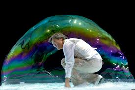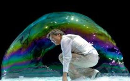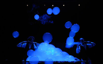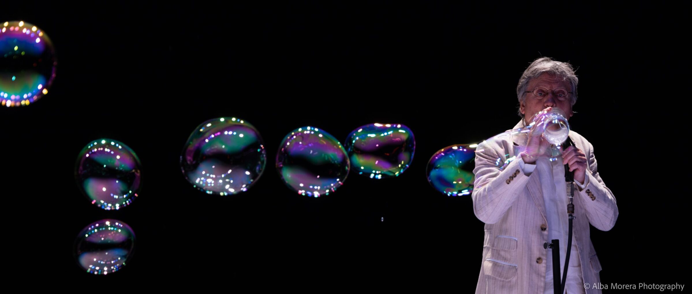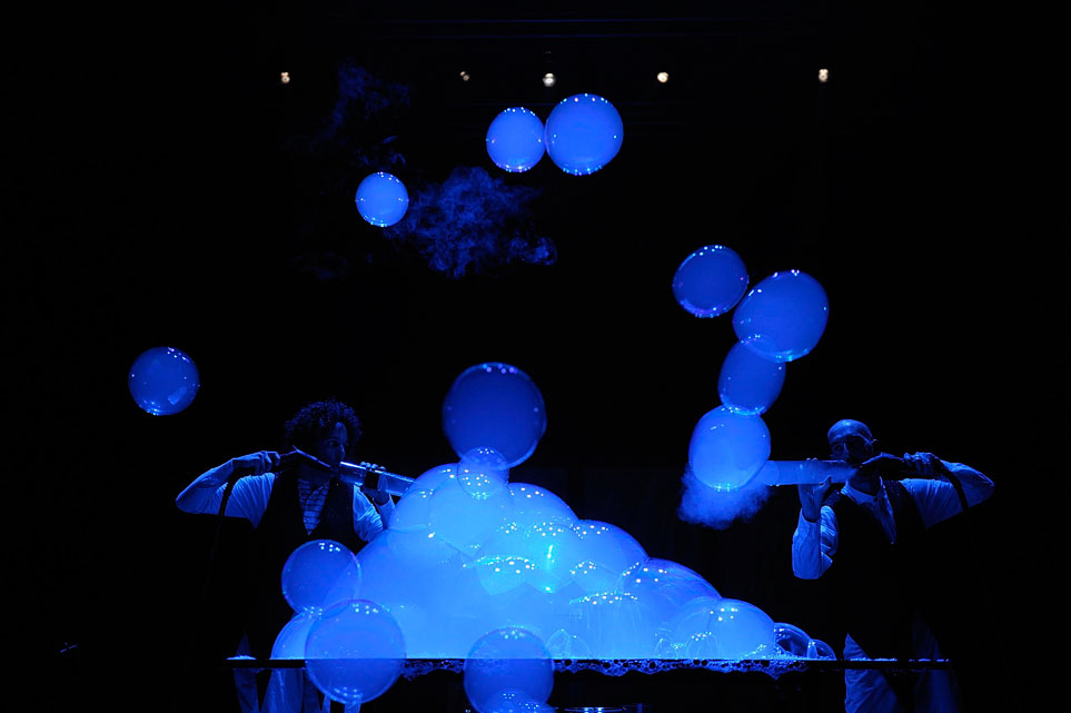 Un spectacle magique et aérien. Une jonglerie brillante où deux drôles de personnages incongrus manipulent, maîtrisent ou habitent des millions de petites ou d’énormes bulles.l